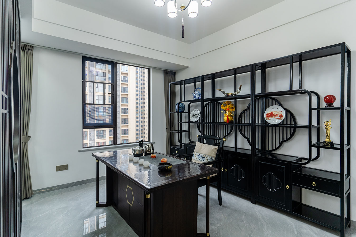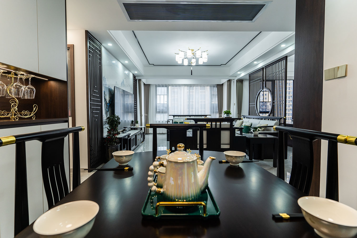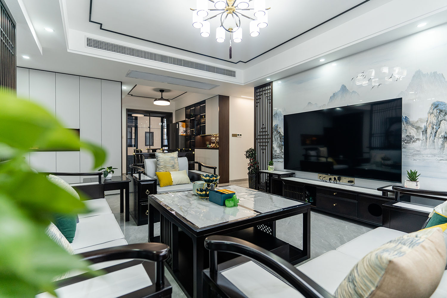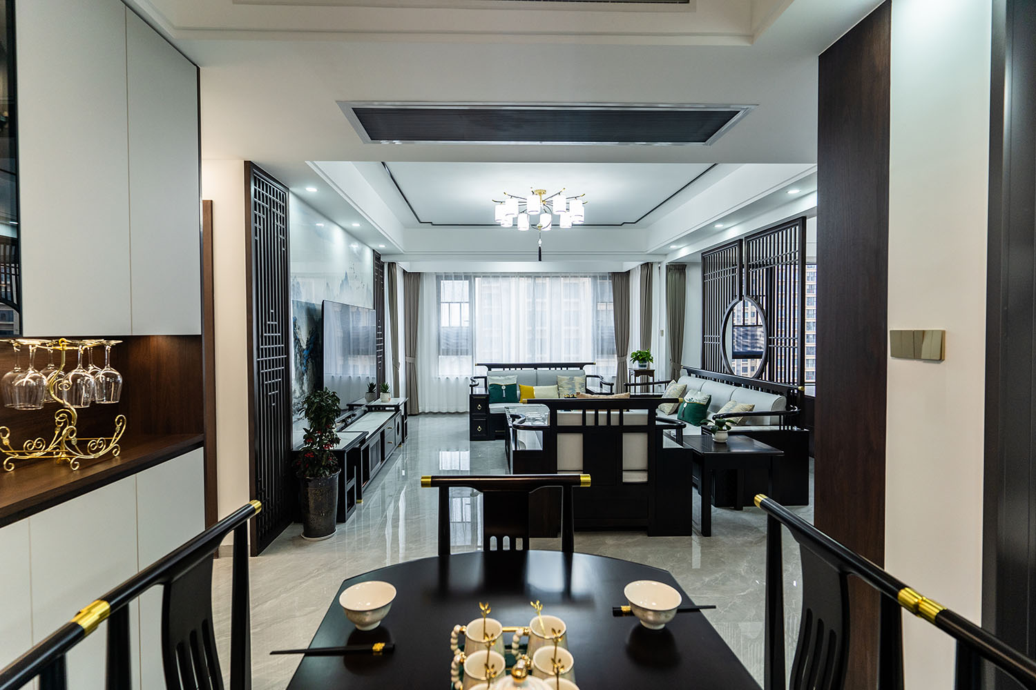 本案位于坐拥自然资源的株洲雪峰山壹号小区,为一套123平米的住宅。设计师以 “现代框架,东方意境” 为核心理念,将传统中式的风骨与现代居住的舒适性相融合,通过对称的布局、简化的中式元素与自然材质的运用,打造出一处既有文化底蕴,又符合当代生活节奏的诗意栖居。 在这123平米的空间里,新中式风格并非元素的简单堆砌,而是通过对传统美学的提炼与现代手法的转译,将山水的意境、东方的对称美学与宜居的现代功能完美结合。它既保留了传统文化的风骨,又展现出契合时代的气度,为居住者创造了一个能安放身心、传承文脉的现代雅居。