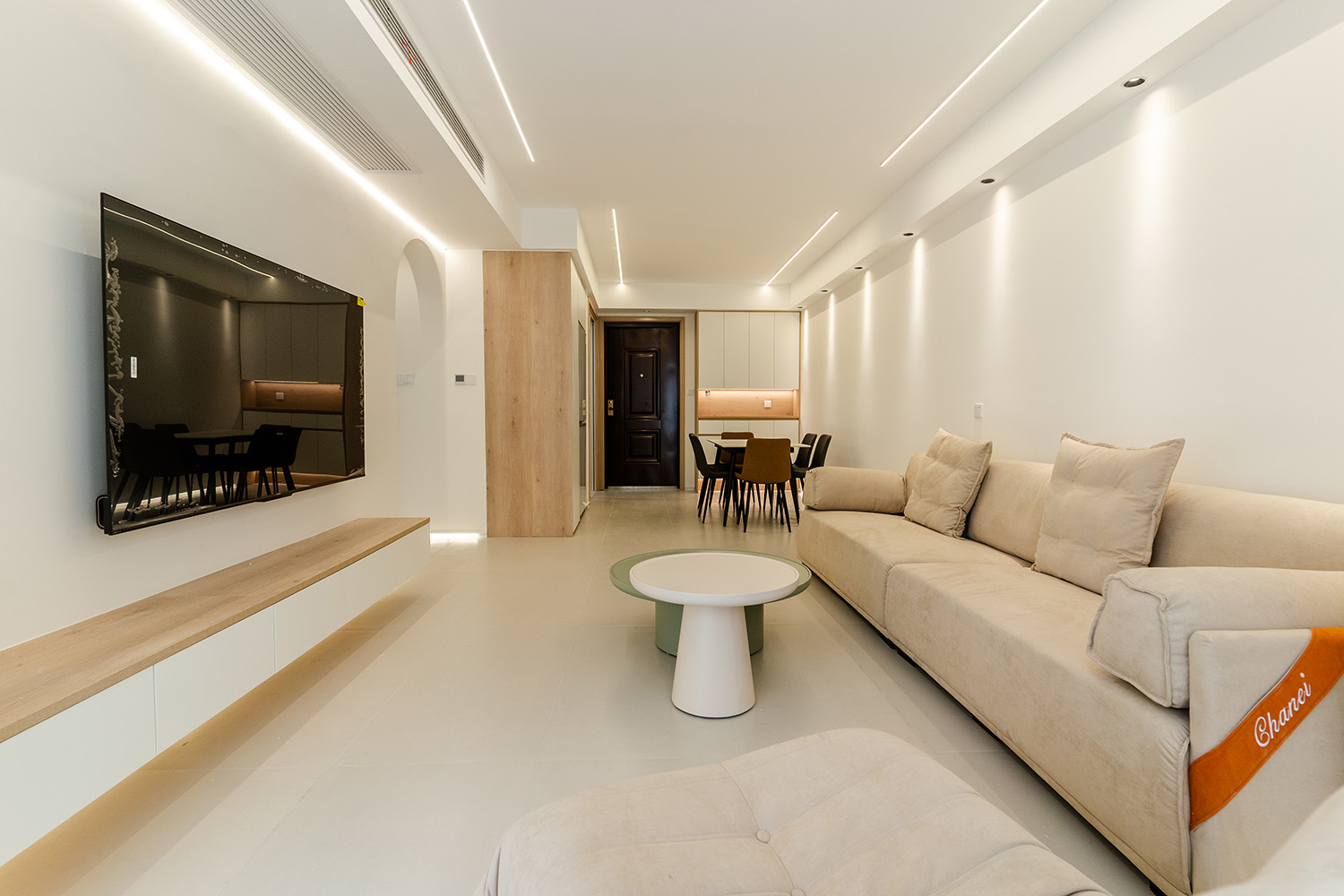 设计理念:温柔包裹,简约治愈 现代奶油风的核心在于营造一种 "被温柔包裹" 的治愈感。它摒弃了尖锐的棱角和冰冷的材质,通过微曲的线条、绵软的质感和温暖的灯光,共同构筑一个如云朵般轻盈、如奶茶般醇厚的空间氛围。设计上追求 "简于形,精于心" ,在满足强大收纳和流畅动线的基础上,于细节处彰显品质,让每一天的归家都成为一场被温柔以待的仪式。 株洲美墅湾106平的现代奶油风装修,通过柔和的色彩、圆润的线条和精心的材质搭配,成功塑造了一个温馨、舒适、实用且高颜值的居家空间。它非常适合追求生活品质、喜爱柔和宁静家居氛围的家庭。