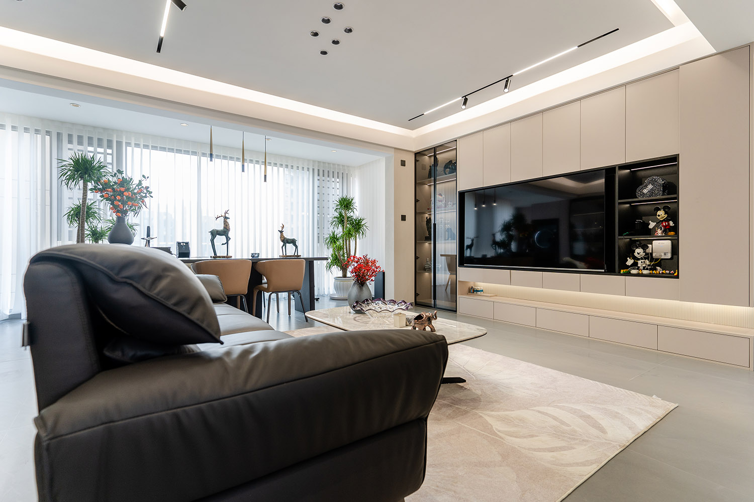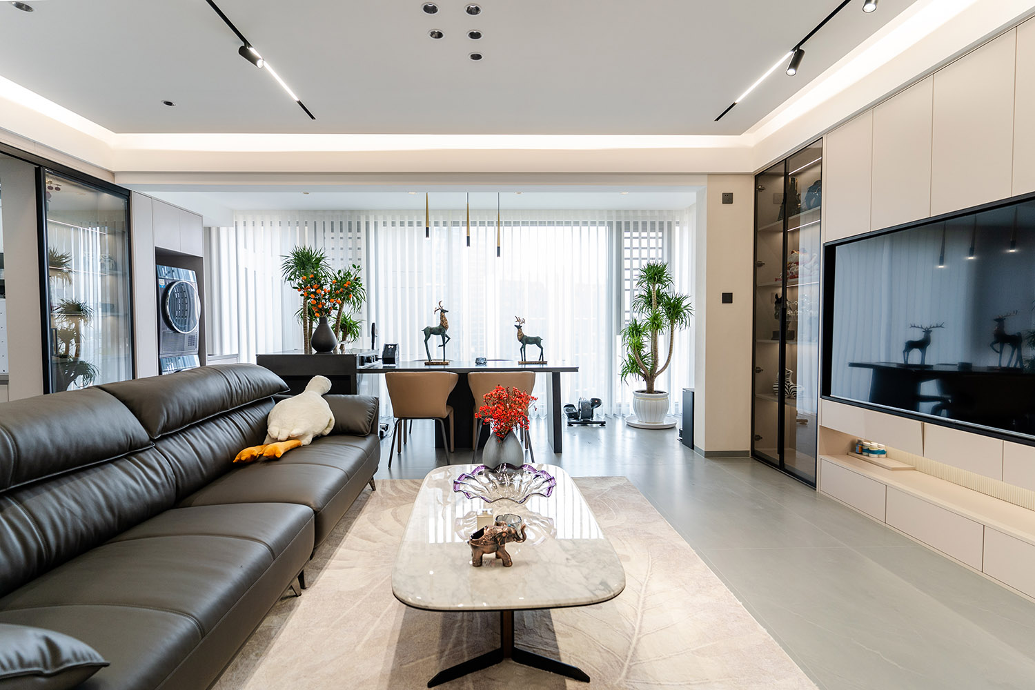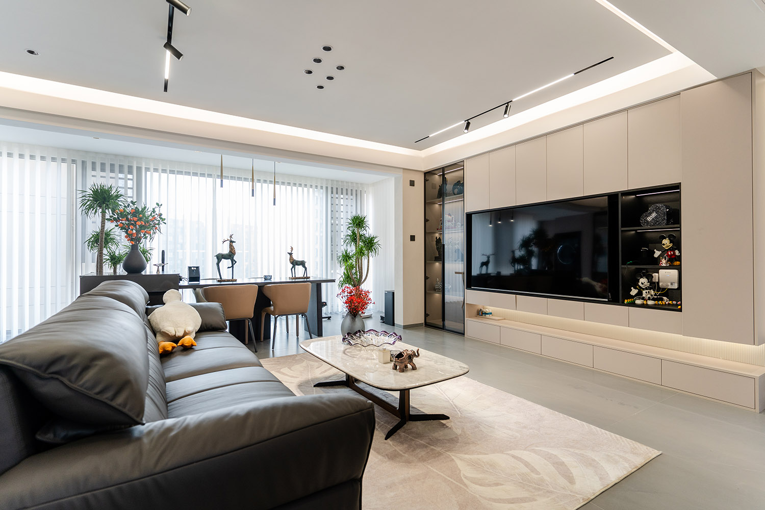 简构生活,奢于本质 本案的核心设计理念是 “功能显性,装饰隐性” 。设计追求一种“去设计师化”的纯净状态,将所有复杂的思考与工艺藏于简洁的表象之下。空间本身被视为一个功能容器与精神容器,通过极致的收纳整合、无障碍的动线规划与柔和的感官体验,让居住者的生活本身成为空间最美的风景。