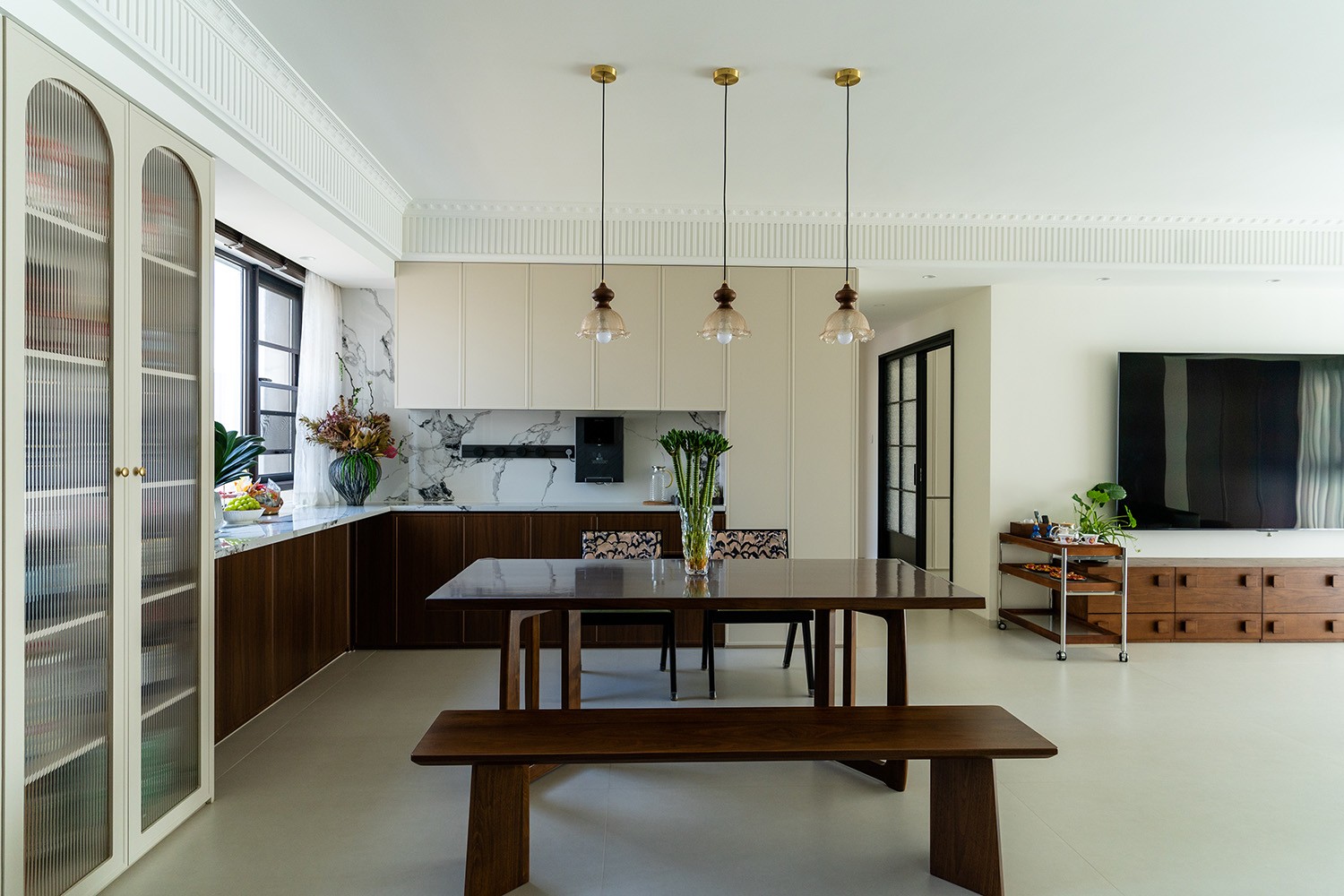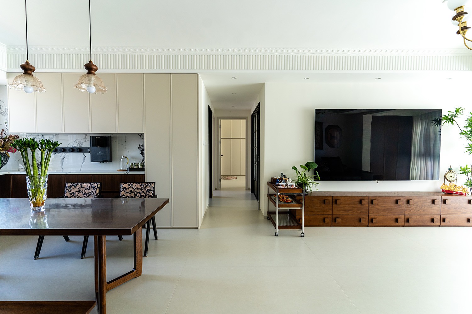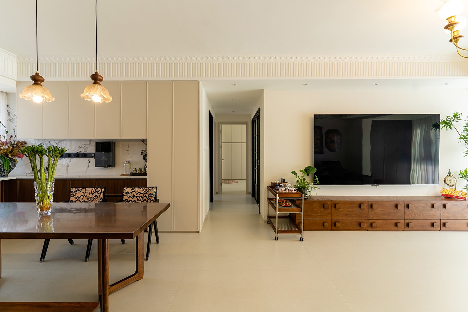 株洲中海誉园这套140㎡的中古风格装修案例,以其温润的木色调、经典的复古元素和简约的空间布局,打造出一个既怀旧又现代的优雅居所。 中古风(Mid-Century Modern)诞生于20世纪30至60年代,是设计史上一个璀璨的黄金时代。它并非简单的怀旧,而是功能与形式、手工与工业、自然与科技完美平衡的典范。其精神内核在于“连接”——连接自然、连接生活、连接时间。 本案巧妙融合了中古风格的厚重质感与现代生活的实用需求,通过开放式布局、经典家具选配和低饱和色调的运用,营造出令人沉醉的时光氛围。它既有中古风格的厚重质感,又有现代设计的简约线条;既能满足怀旧情感的需求,又能提供当代生活的舒适体验。