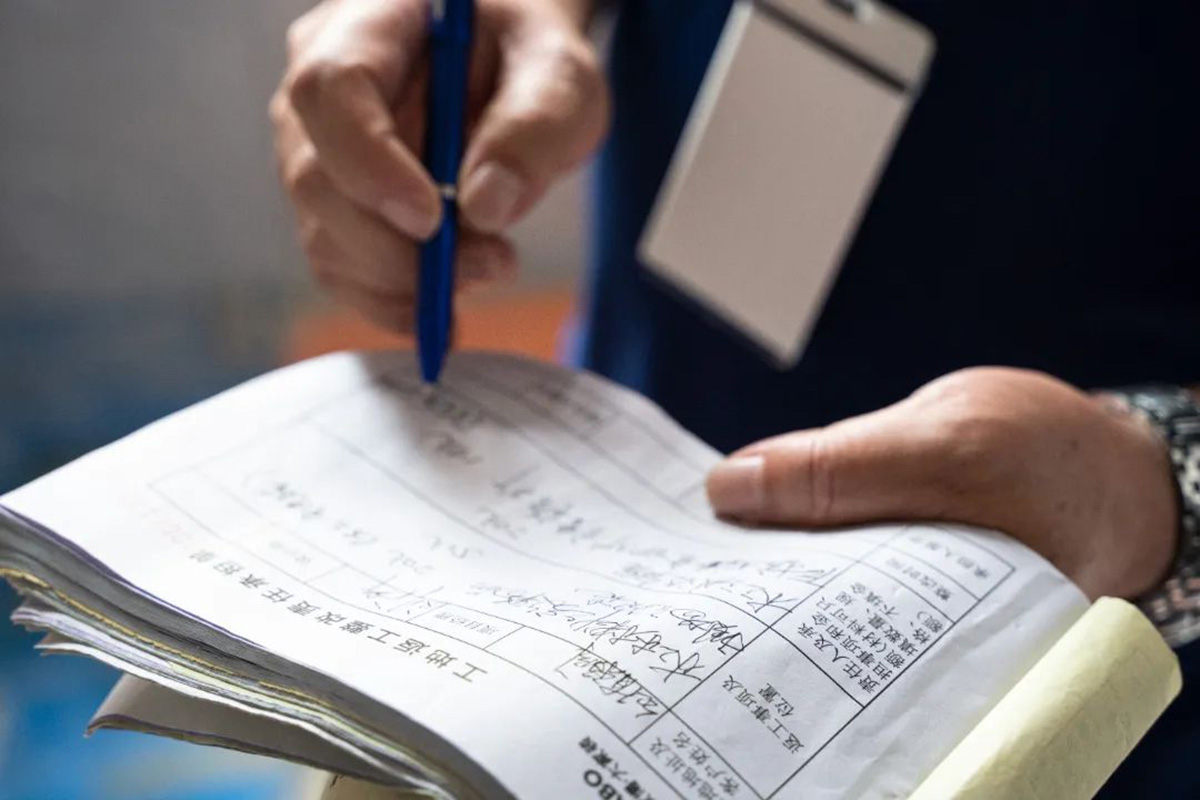 ▲工艺不达标通通砸无赦,标记问题处,并开具返工整改责任承担书,责令立即整改。